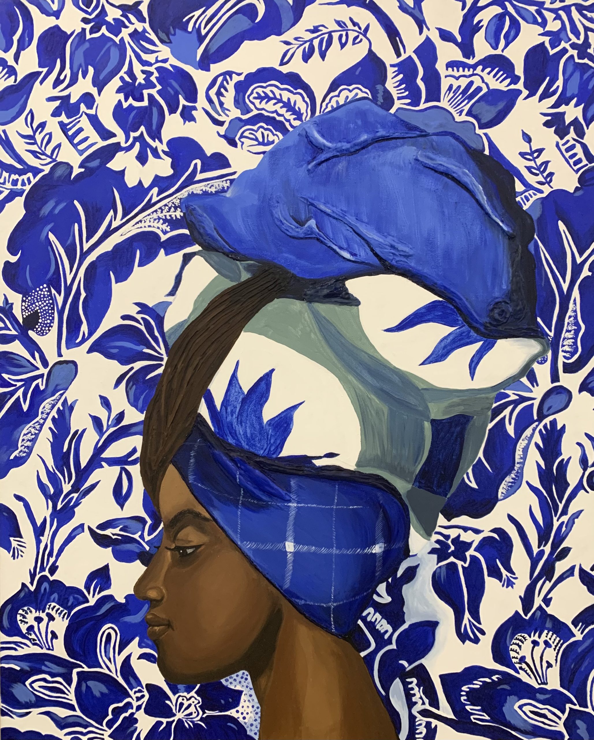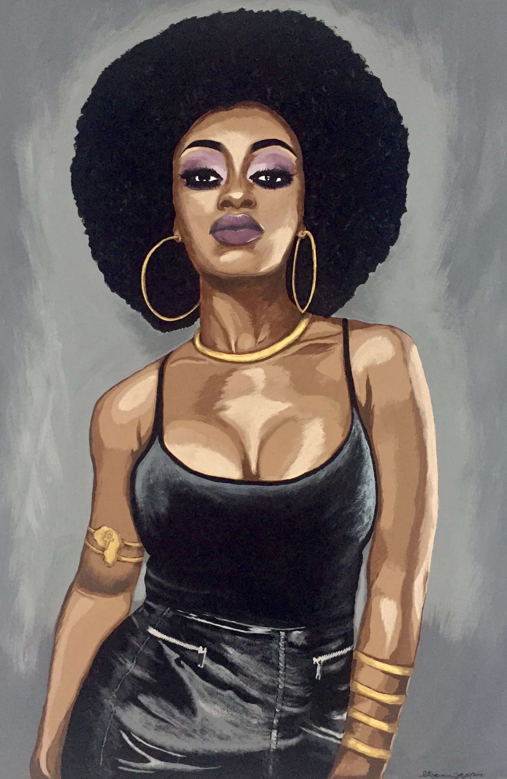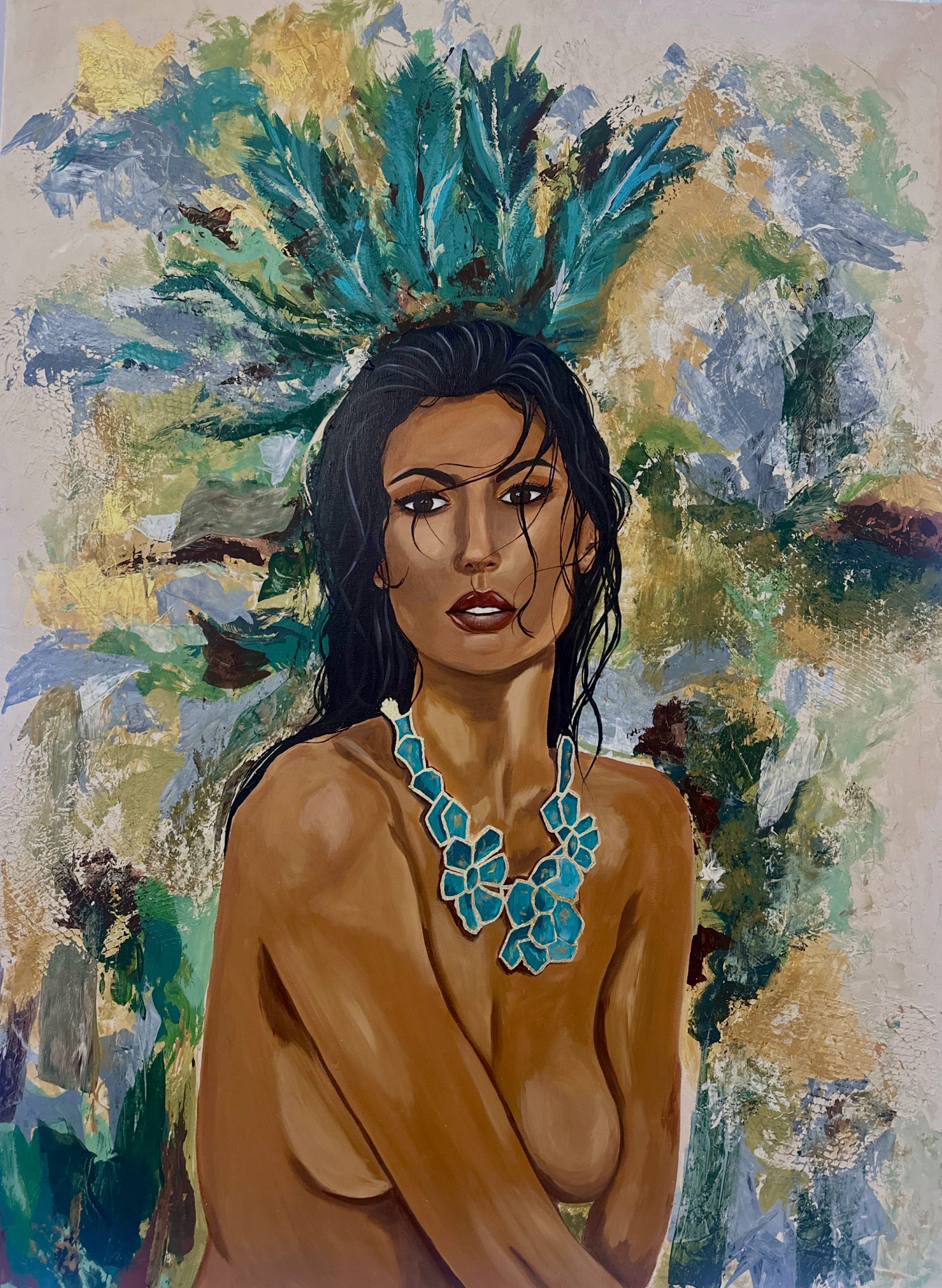 I’ve been artistically inclined since I was a child. I sold my first painting at 11yrs old. I moved to Hawaii when I was 18 and continued doing art. I was blessed to have been chosen to design the award certificate for the Hawaiian Music Hall of Fame. Later I became a graphic designer for an international resort clothing company in Honolulu, Hawaii. I retired from that and moved to Atlanta 7yrs ago when my daughter got accepted into college. I now focus primarily on Native American and African American portrait art. I’ve painted many commissioned portrait pieces. You can now find my art available for purchase hanging in the gallery. I do take orders for commission pieces. You can reach out to me through Instagram @studio_laine or Facebook @Kammi Moon or leave a message for me with the gallery.